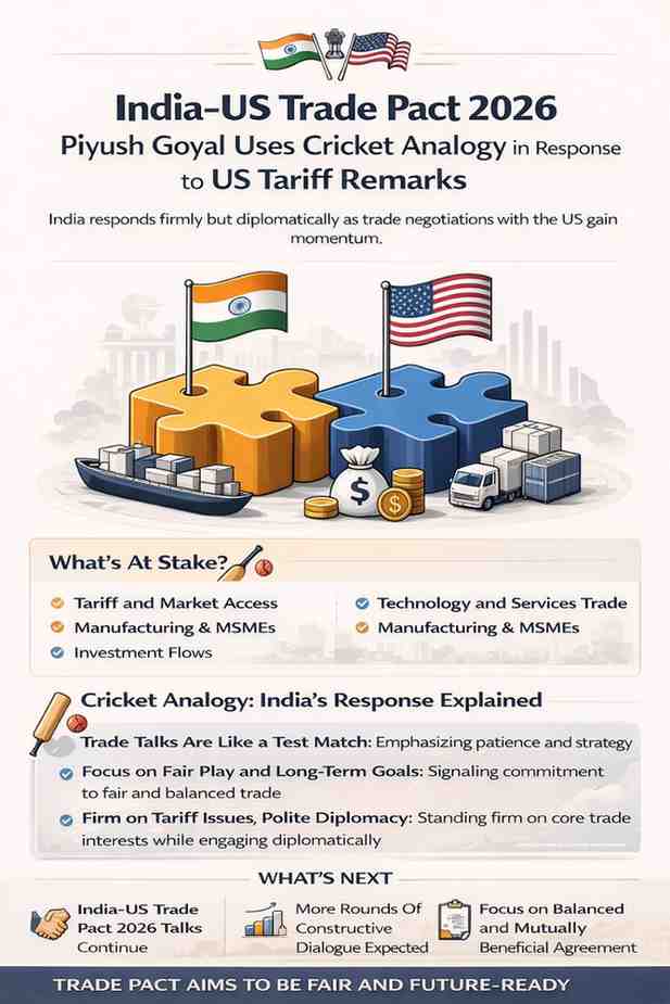 India’s trade negotiations with the United States are back in focus after Union Commerce and Industry Minister Piyush Goyal responded to recent US tariff-related remarks using a cricket analogy.