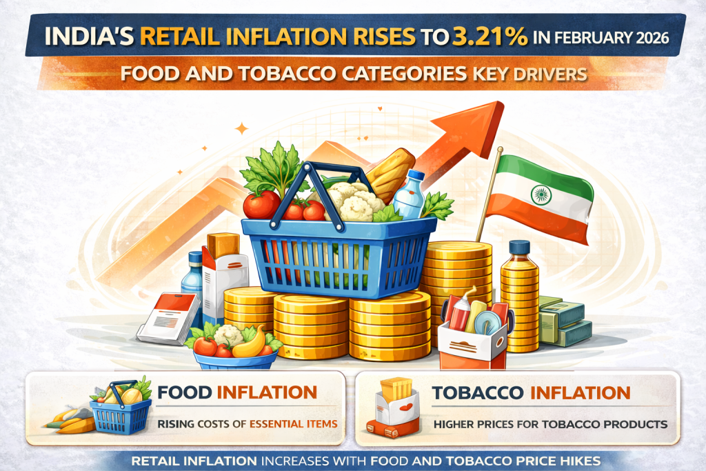 India’s Retail Inflation Rises to 3.21% in February 2026 as Food and Tobacco Prices Push CPI Higher
