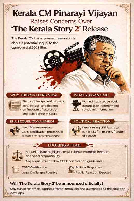 Kerala Chief Minister Pinarayi Vijayan has raised concerns over the reported release of The Kerala Story 2, a sequel to the controversial 2023 Hindi film The Kerala Story.