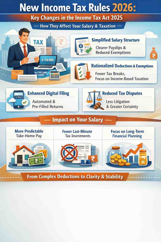 The Income Tax Act, 2025 marks one of the most consequential rewrites of India’s direct tax system in decades, laying the foundation for how salaried individuals will be taxed from the financial year 2026 onward. Rather than introducing abrupt slab shocks or headline-grabbing rate changes, the new law focuses on simplification, transparency, and predictability. For millions of employees, this shift alters not only how much tax is paid, but also how salary structures, deductions, and compliance are understood in everyday financial planning.