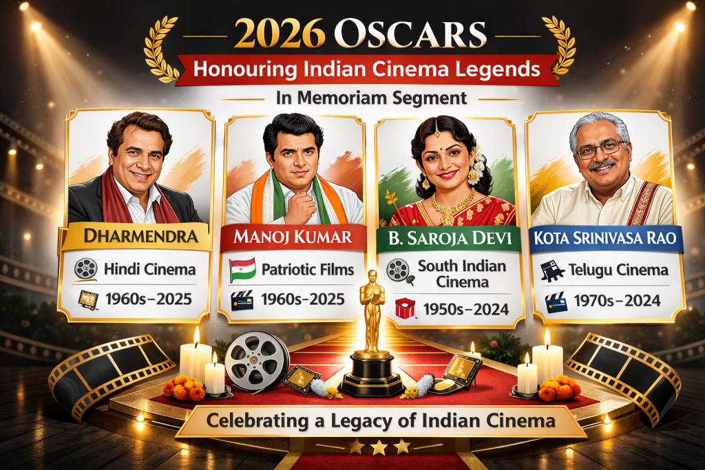 The tribute to Dharmendra, Manoj Kumar, B Saroja Devi and Kota Srinivasa Rao demonstrates that Indian performers are part of the global cinematic legacy celebrated by the Academy.