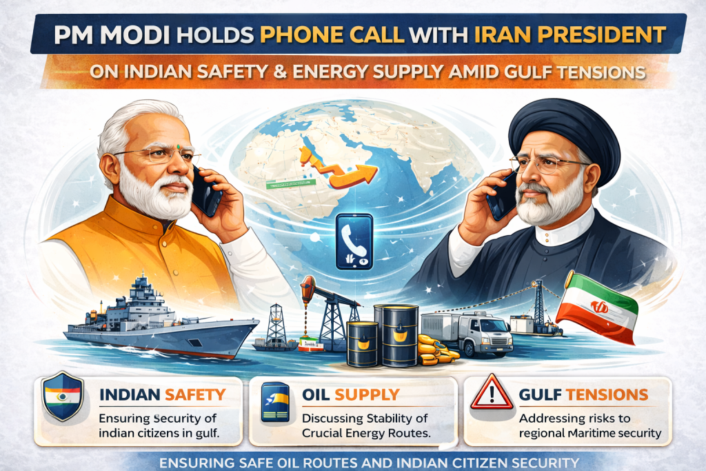 Prime Minister Narendra Modi held a phone conversation with Iran’s President Masoud Pezeshkian to discuss the safety of Indian citizens and the stability of energy supply routes as tensions continue in the Gulf region.
