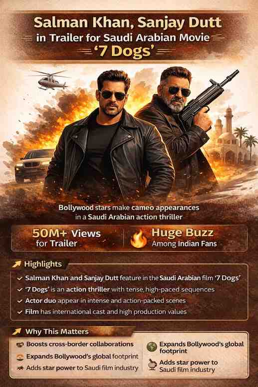 The trailer of the upcoming Saudi Arabian film ‘7 Dogs’ has caught the attention of Indian fans after Salman Khan and Sanjay Dutt were seen making special appearances. The presence of two major Bollywood stars in an international production has sparked excitement across social media.