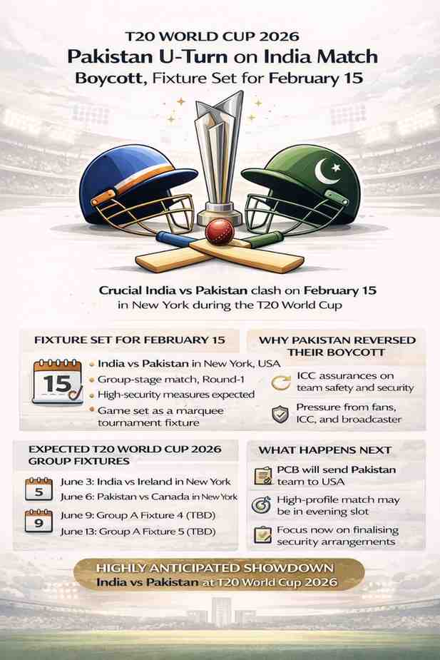 T20 World Cup 2026: Pakistan U-Turn on India Match Boycott, Fixture Set for February 15