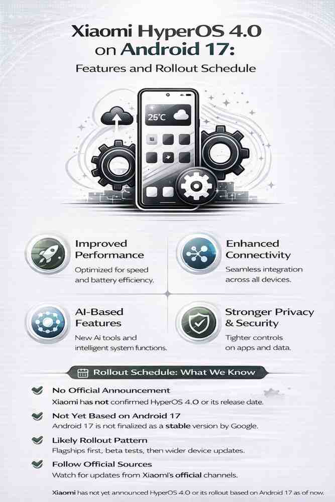However, it is important to clarify that as of now, Xiaomi has not officially announced HyperOS 4.0 or a confirmed rollout schedule linked to Android 17. The company’s current publicly released software is based on earlier Android versions.
